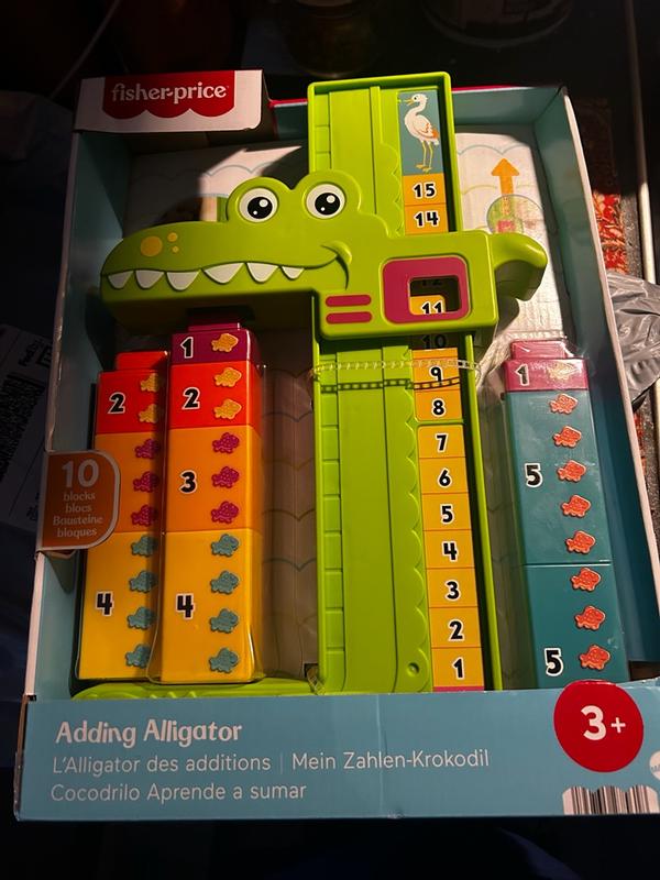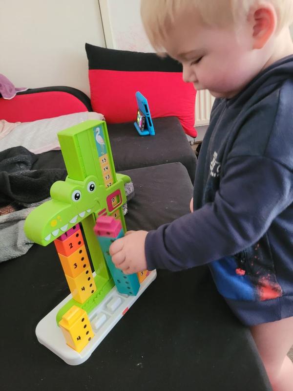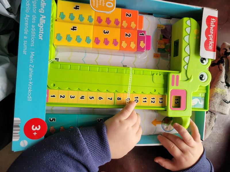 My son loves his adding alligator from Fisher Price. It has helped him start to learn how to add. Its very sturdy and solid so it is not very easy to break even if it does get knocked over. The blocks are a perfect size so they pose no choking hazard and are completely safe.