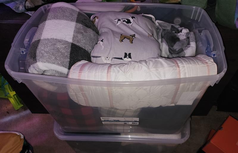 112 Qt Multipurpose Stackable Storage Bin with Latching Lid, Clear (2 Pack