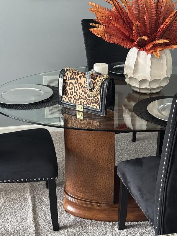 Nicely made, nice size, extra fashionable with the animal print and chain accent. Especially nice that I got on a wonderful sale. I bought it for a specific pair of shoes/outfit but its a great size for everyday! I was pleasantly surprised when I opened the box!!