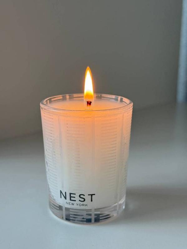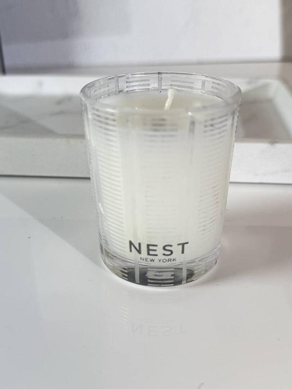 I got this as a votive sample with my perfume oil order and I’ve never tried Nest NYC candles. With most candles, I either never like the scent, or I get a headache (or both!) I didn’t have high expectations. However, when I received this today, the smell was amazing, fresh, and clean. It does smell like the fresh air after it rains, with a hint of a really clean cologne smell. I lit it and the whole room smells great, but it isn’t so heavy that it gives me a headache. I was shocked at how powerful the throw of the candle is, for such a small candle! I am very pleasantly surprised, and I will definitely be looking into buying more candles from Nest NYC.
