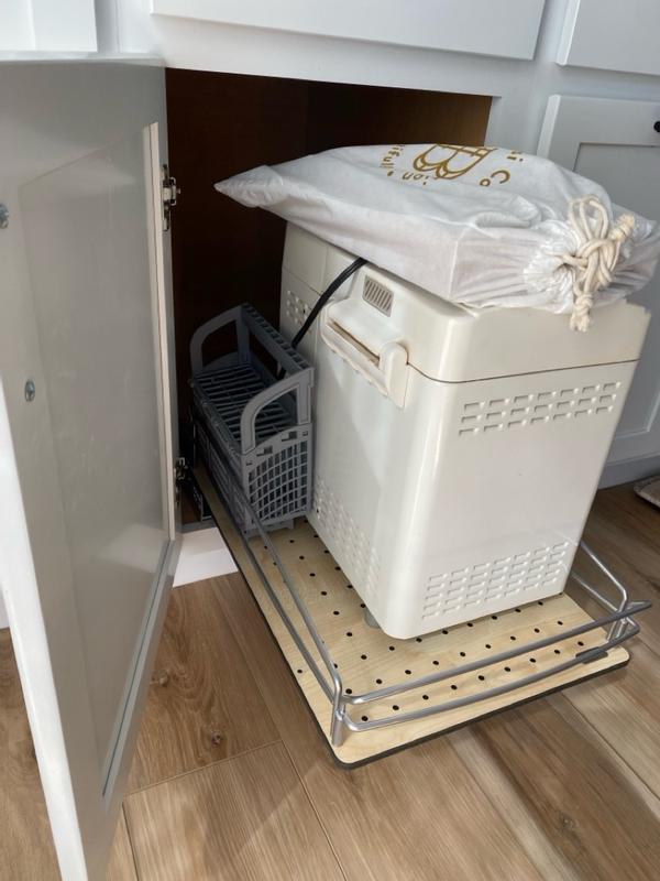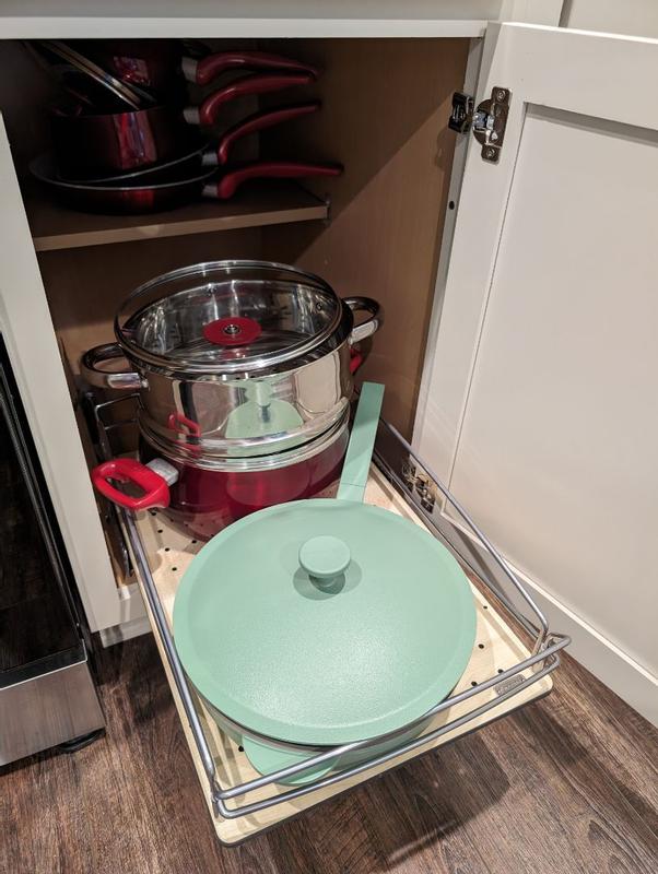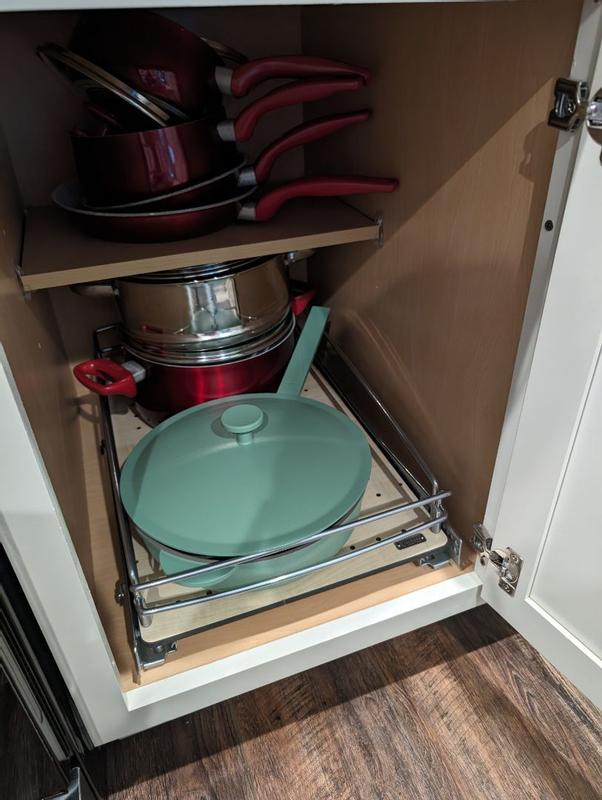 Thank you for letting me try this bottom drawer pull out shelf! I love that it soft closes, helps to keep anything from slamming or jostling around! It helped me so much in the kitchen with my pans!