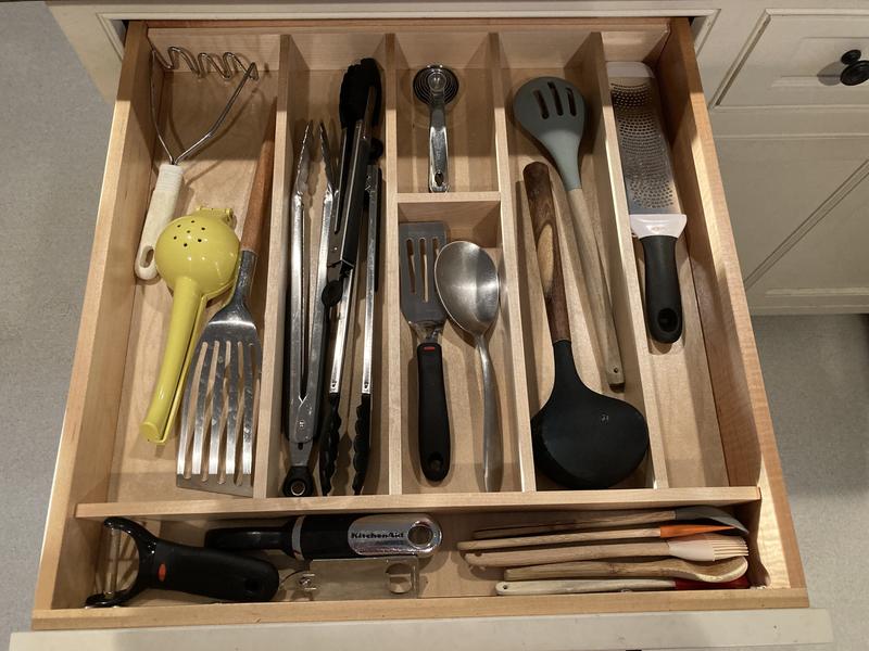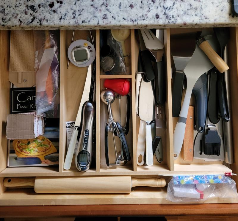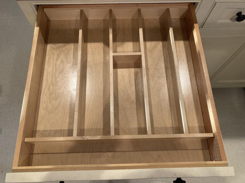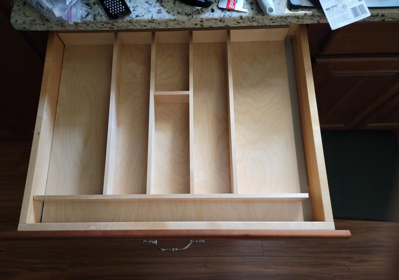 This is a great product. So glad I was able to get in on this product sample! This can be cut down to any size. It’s real wood and is extremely nice. I don’t have a photo because we don’t have it installed yet. It cut nicely and we are gonna stain it. Plenty of space for all your utensils . It’s gonna be just Perfect!! Give it a try if you are in the market for a drawer separator.