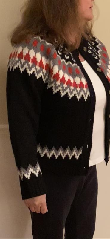 I love how cozy this sweater feels. It’s a warm hug on a cold day. The Fair Isle style is timeless and classic. The colors complement each other. The detail down to the buttons are perfect. Versatile enough to wear with your favorite jeans or dress it up with a nice wool skirt. It runs true to size. I am usually a L/XL but I sized up to a 1X because I wanted it a little oversize.
