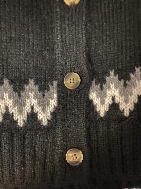 Really cute fair isle sweater. The pattern looks even better in person! I ordered one size up from my usual and I’m glad I did; it fits comfortably and has that slightly relaxed look that works well for layering. The material isn’t too itchy (which I was worried about), so it’s wearable all day. The only downside is that the buttons feel a little cheap, but overall it’s a cozy and stylish sweater.