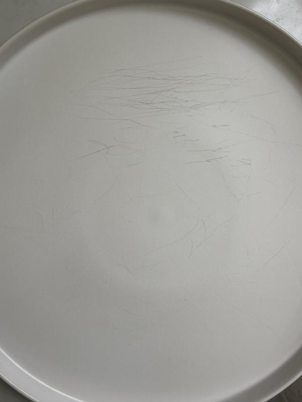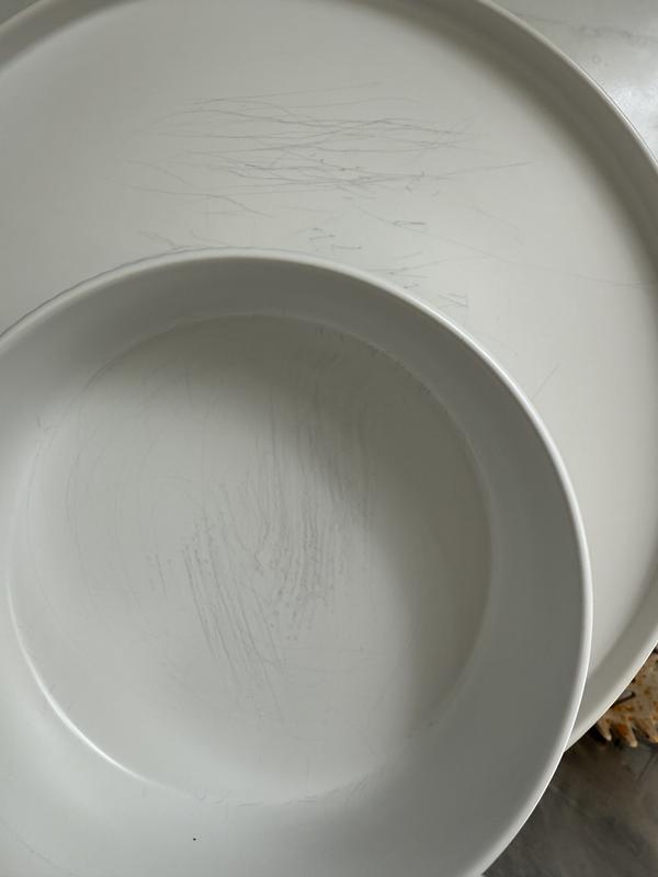 After two weeks of use the plates are full of scratches. Beautiful at first but scratches show up within 2 weeks of use.